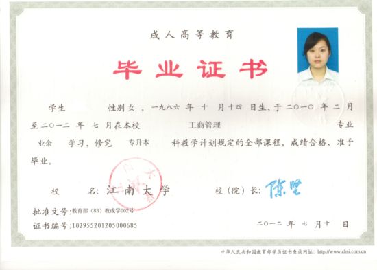 四、费用及证书 学习费用将严格按江苏省苏价费[2007]271号文件规定执行。完成学业,颁发江南大学本(专)科毕业证书,国家学历,教育部电子注册。符合条件者,可授予学士学位。